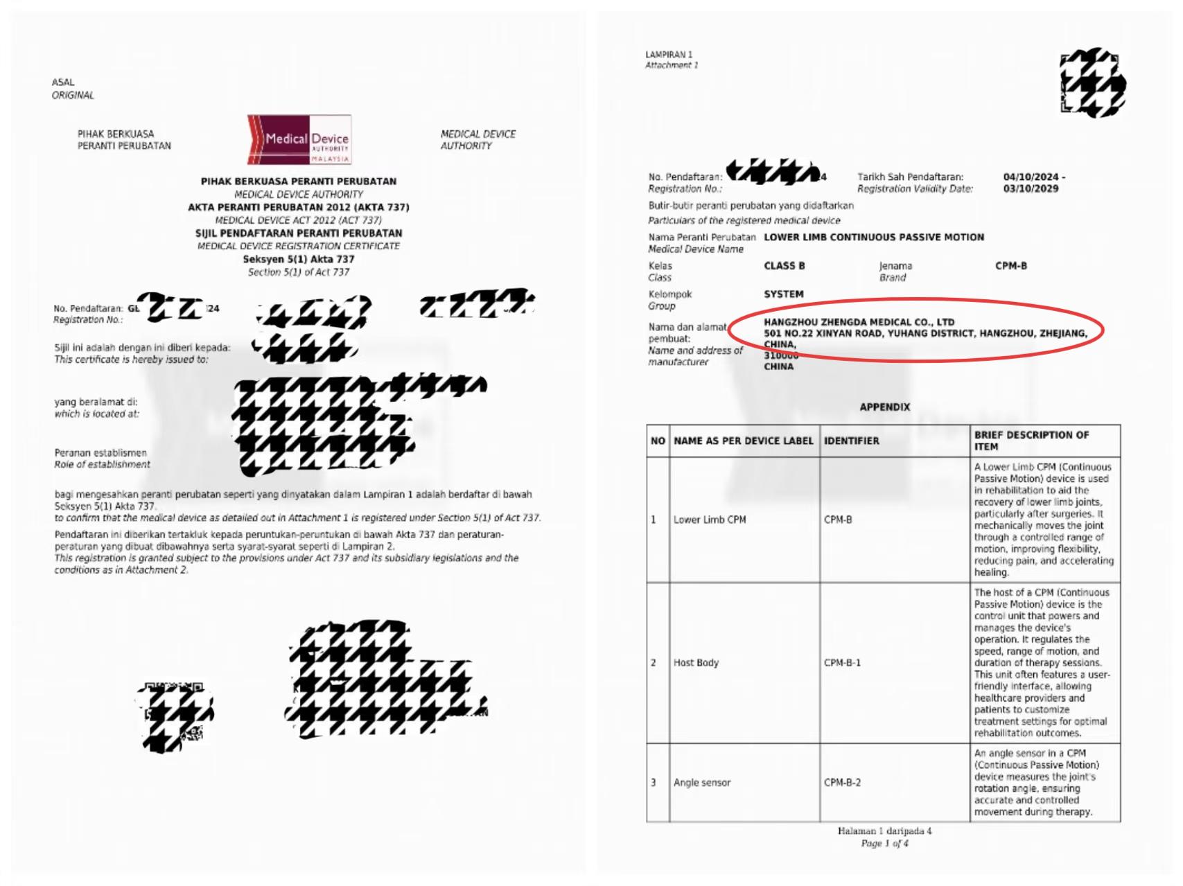 Hangzhou Zhengda's Lower Limb Rehab Machine & Tourniquet System Approved by Malaysia MDA. 30+ Years OEM/ODM Experience. CE/FDA/ISO13485 Certified.